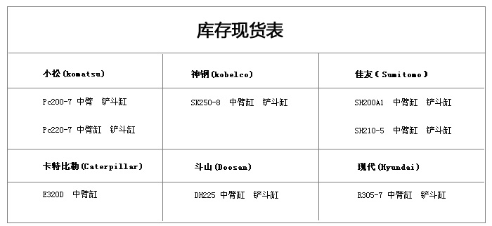 小松PC系列挖掘機液壓缸、神鋼SK系列挖掘機液壓缸、卡特E系列挖掘機液壓缸、住友SH系列挖掘機液壓缸、現代R系列挖掘機液壓缸、大宇(斗山)DH系列挖掘機液壓缸……